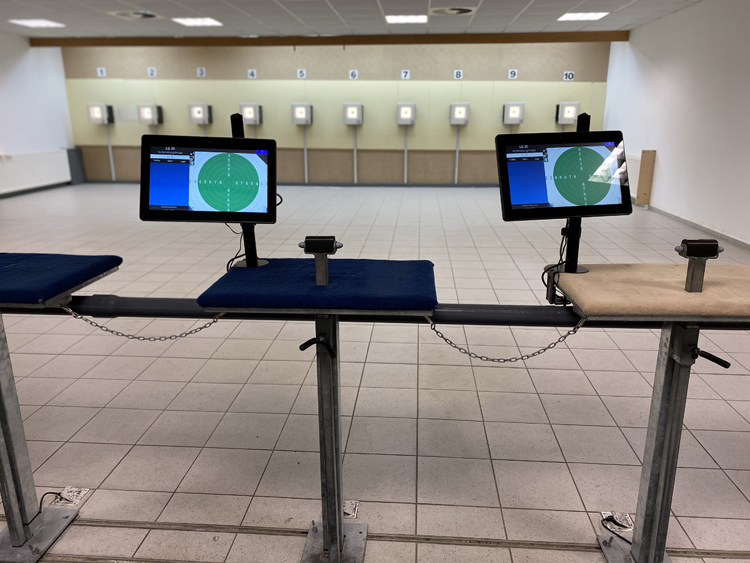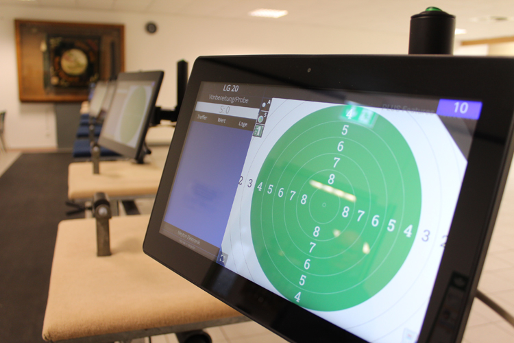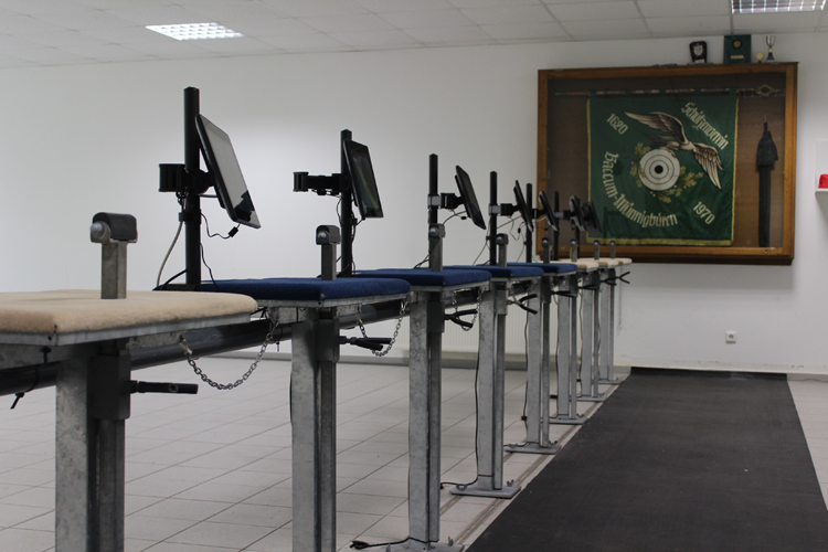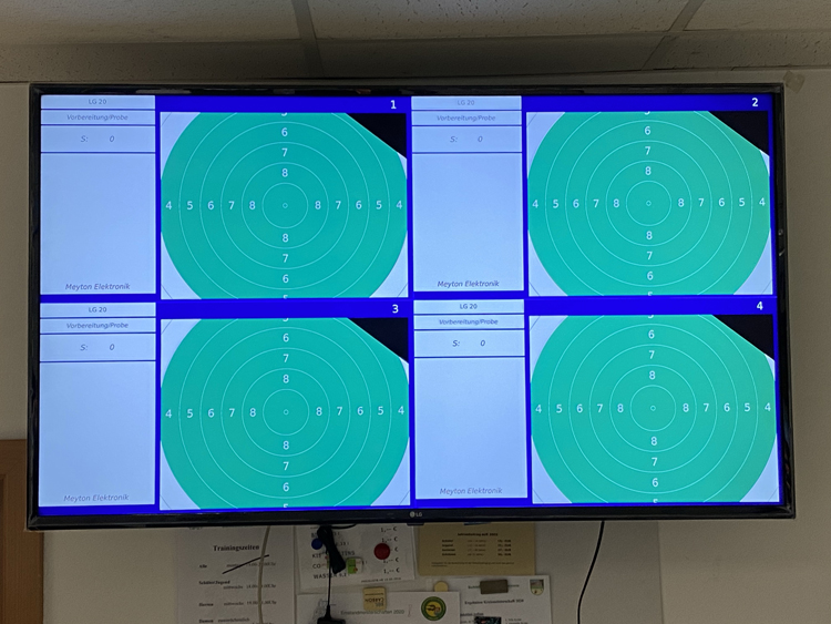 Uns stehen jetzt 10 elektronische Schießstände der Fa. Meyton für Training und Wettkämpfe zur Verfügung. Ergänzt wird die Anlage durch einen Steuerungscomputer für die elektronische Auswertung und die Durchführung von Wettkämpfen sowie ein großer Monitor im Vorraum. Auf diesem Monitor können Schützen und Gäste die Ergebnisse der schießenden Sportler live sehen. Die Ergebnisse können für den einzelnen Schützen ebenfalls direkt ausgedruckt werden.